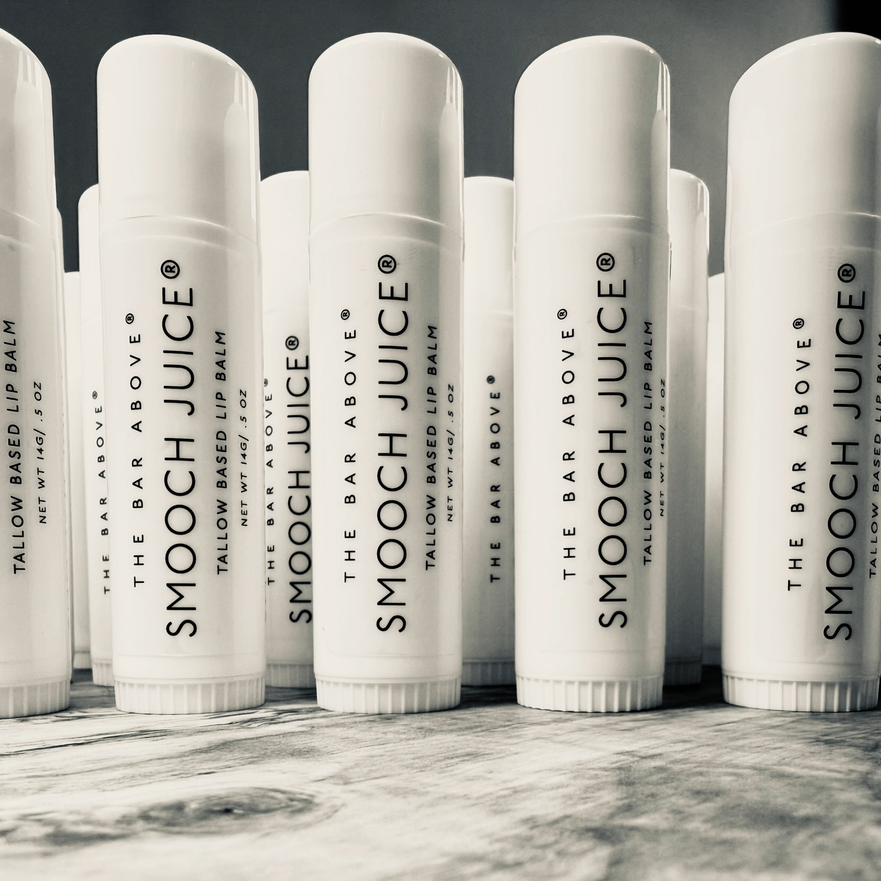 SMOOCH JUICE® is a nourishing, tallow-based lip balm with a refreshing hint of peppermint. It hydrates the lips, leaving them soft, plump, and perfectly prepped for the day.